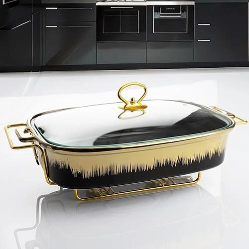 Ksv 37cm Dikdörtgen Tencere Porselen Telli